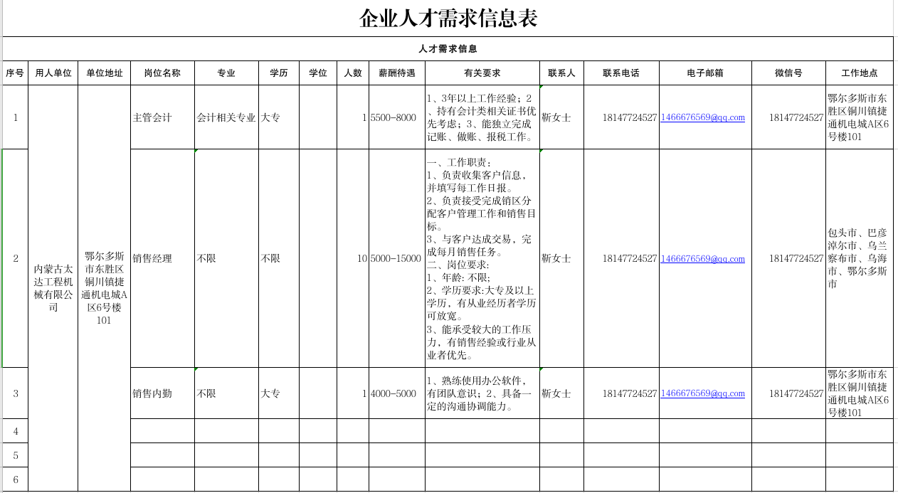【招聘】鄂尔多斯市景园物业因工作需求现诚聘: 客服2名,女要求:口齿清晰...